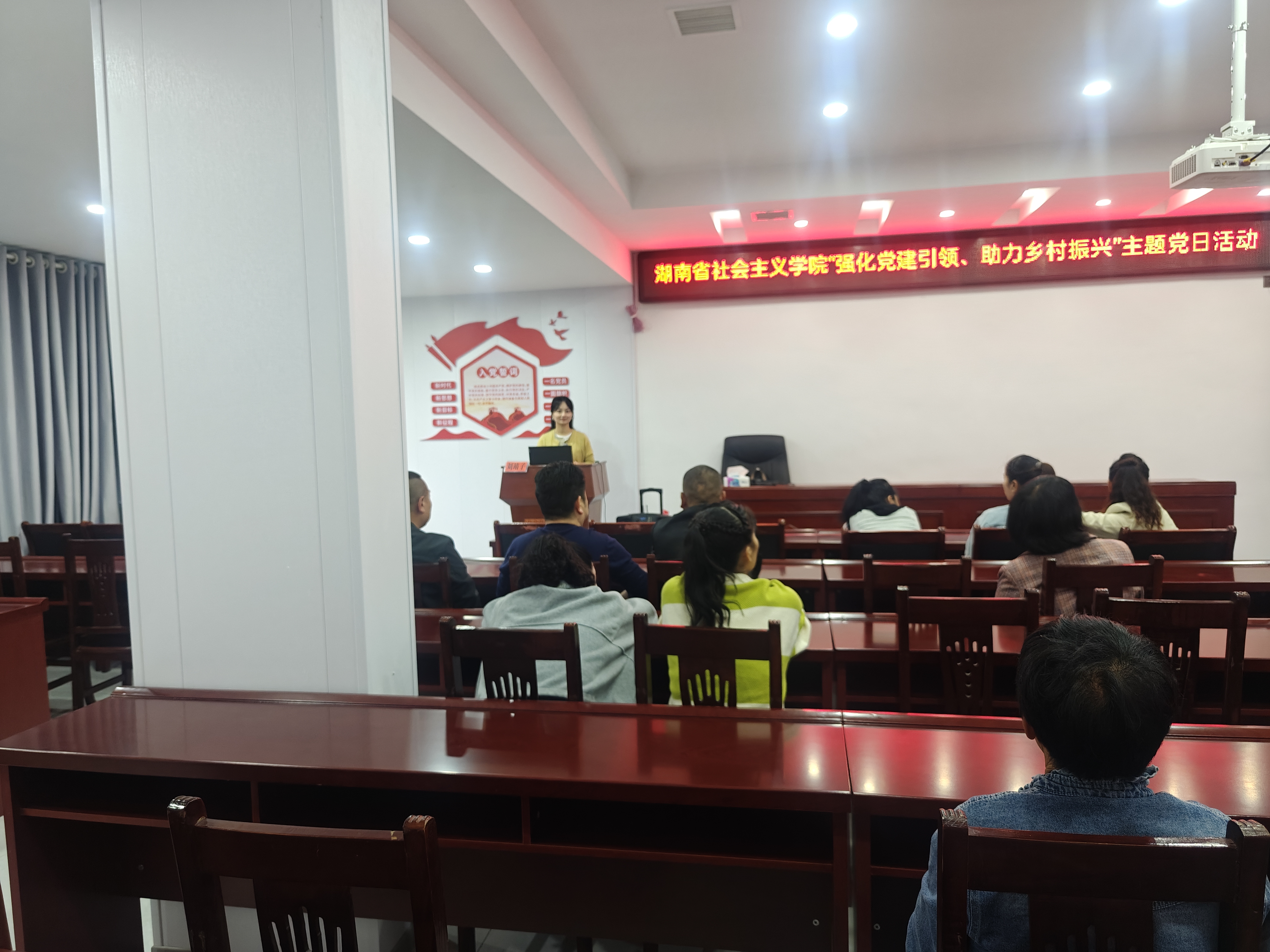 为推动省社会主义学院党建提质增效,助力乡村全面振兴,巩固脱贫攻坚成果,进一步激发党员干部的工作热情和创新活力,10月16-17日,学院组织干部教职工赴乡村振兴驻村帮扶点——新化县桑梓镇洪潮村开展“强化党建引领、助力乡村振兴”主题党日活动。