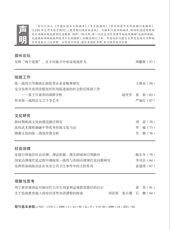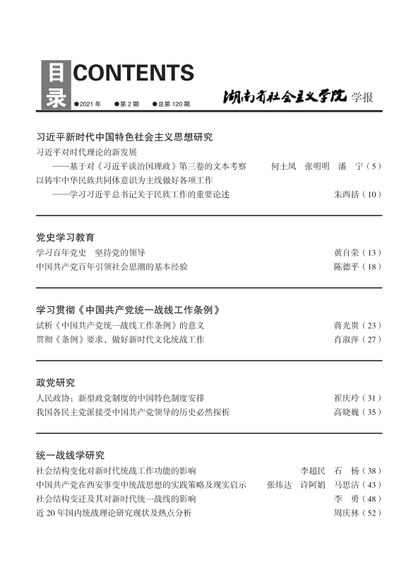 湖南社院学报2021年第2期封面及目录