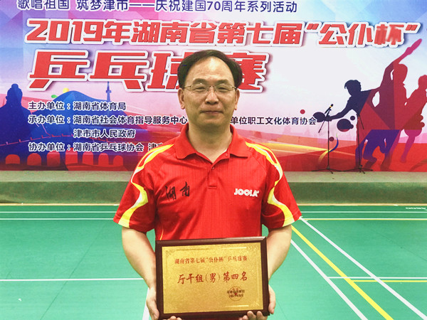近日,2019湖南省第七届“公仆杯”乒乓球比赛在常德津市举行,我院代表队积极参与比赛,最终荣获团体“优秀组织奖”,院长雷鸣强获得厅级干部男子单打第四名的好成绩。