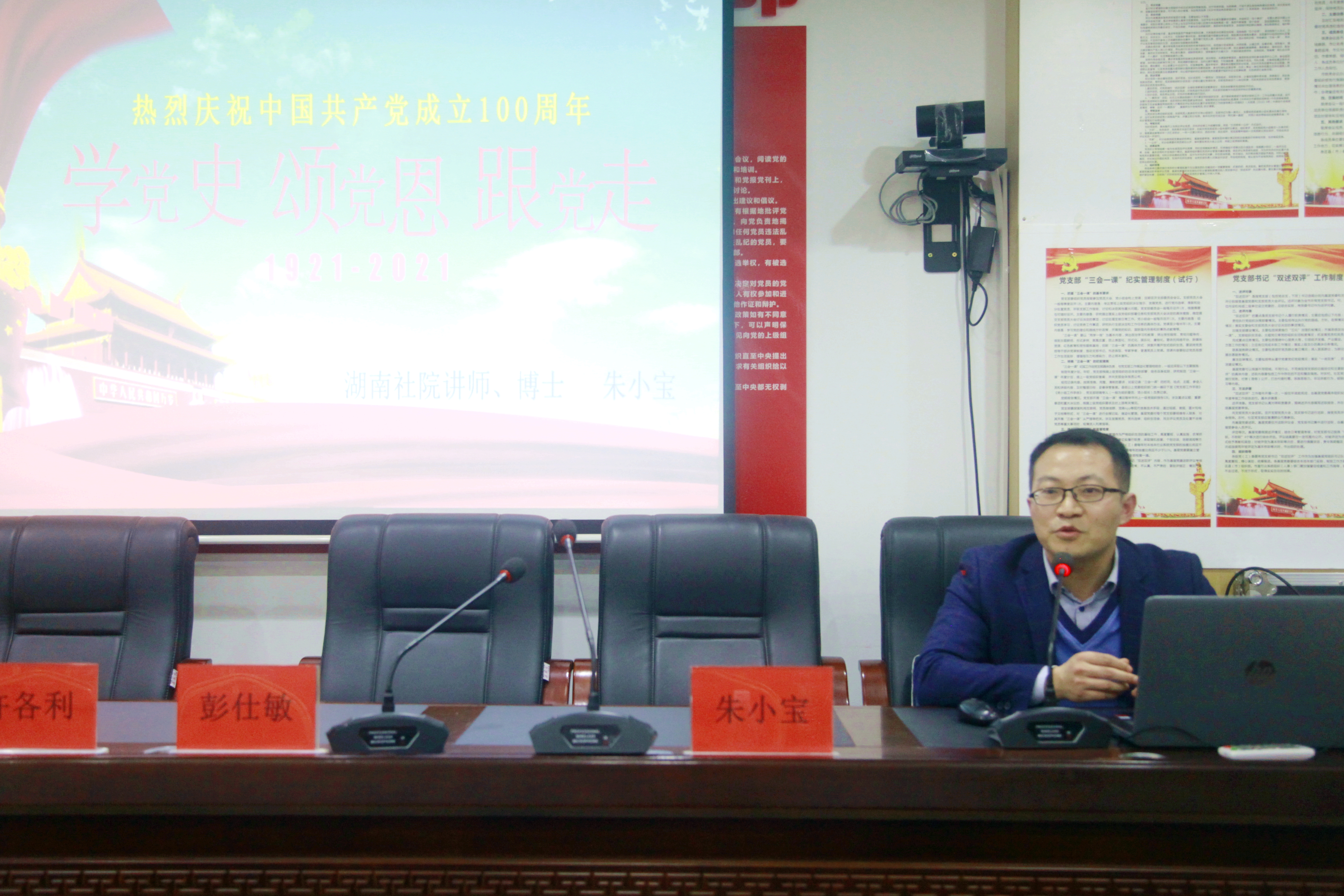 朱小宝老师感情真挚、深入浅出,回顾了中国共产党“救亡图存、苦难辉煌”的百年历史和给予我们的深刻启示。他表示,要把坚持党的领导作为政治建设的首要任务,形成强大合力,从容应对各种复杂局面和风险挑战。要坚定理想信念,增强“四个自信”,补足精神之钙,为实现“三高四新”战略和中华民族伟大复兴中国梦贡献力量。
