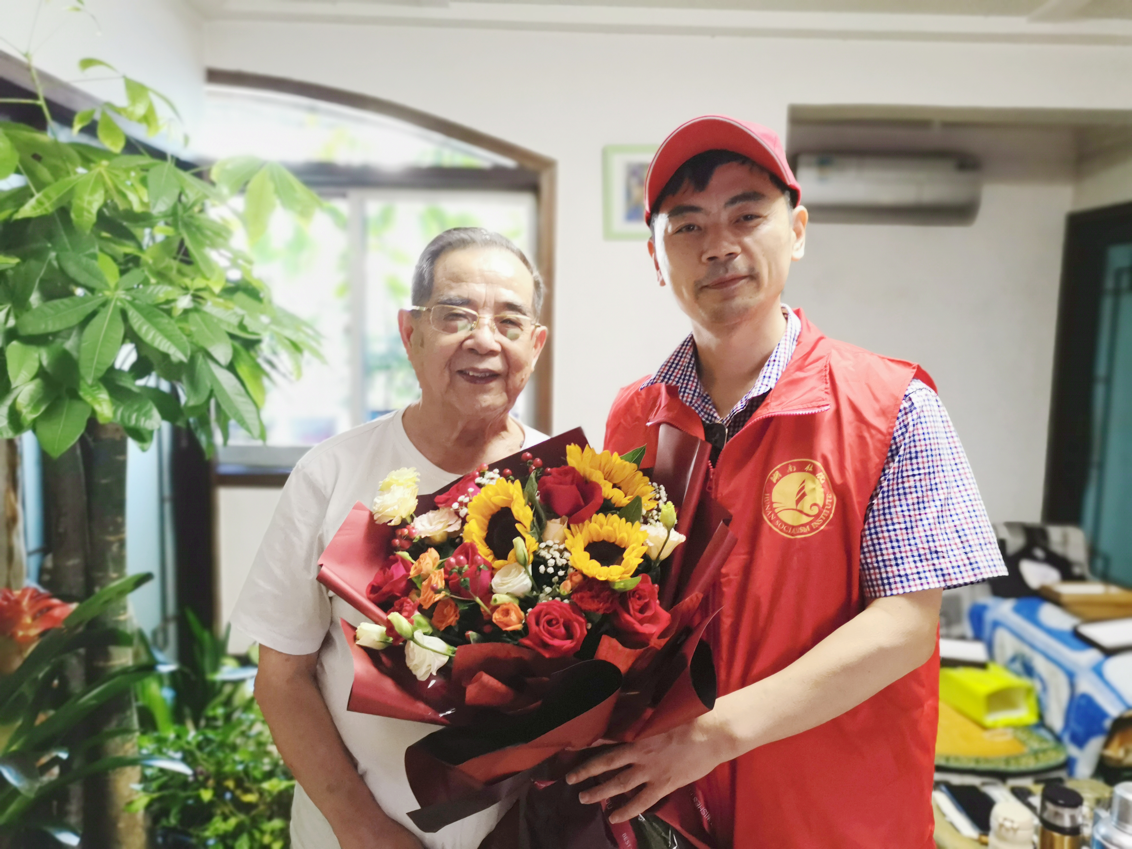 9月13日下午,沙龙手机官方网站_沙龙(中国)机关党委积极响应省直工委发起的“微光大义·致敬老党员”志愿服务活动,组织青年志愿者到长沙市芙蓉区走访慰问老党员、老红军杨炳南。