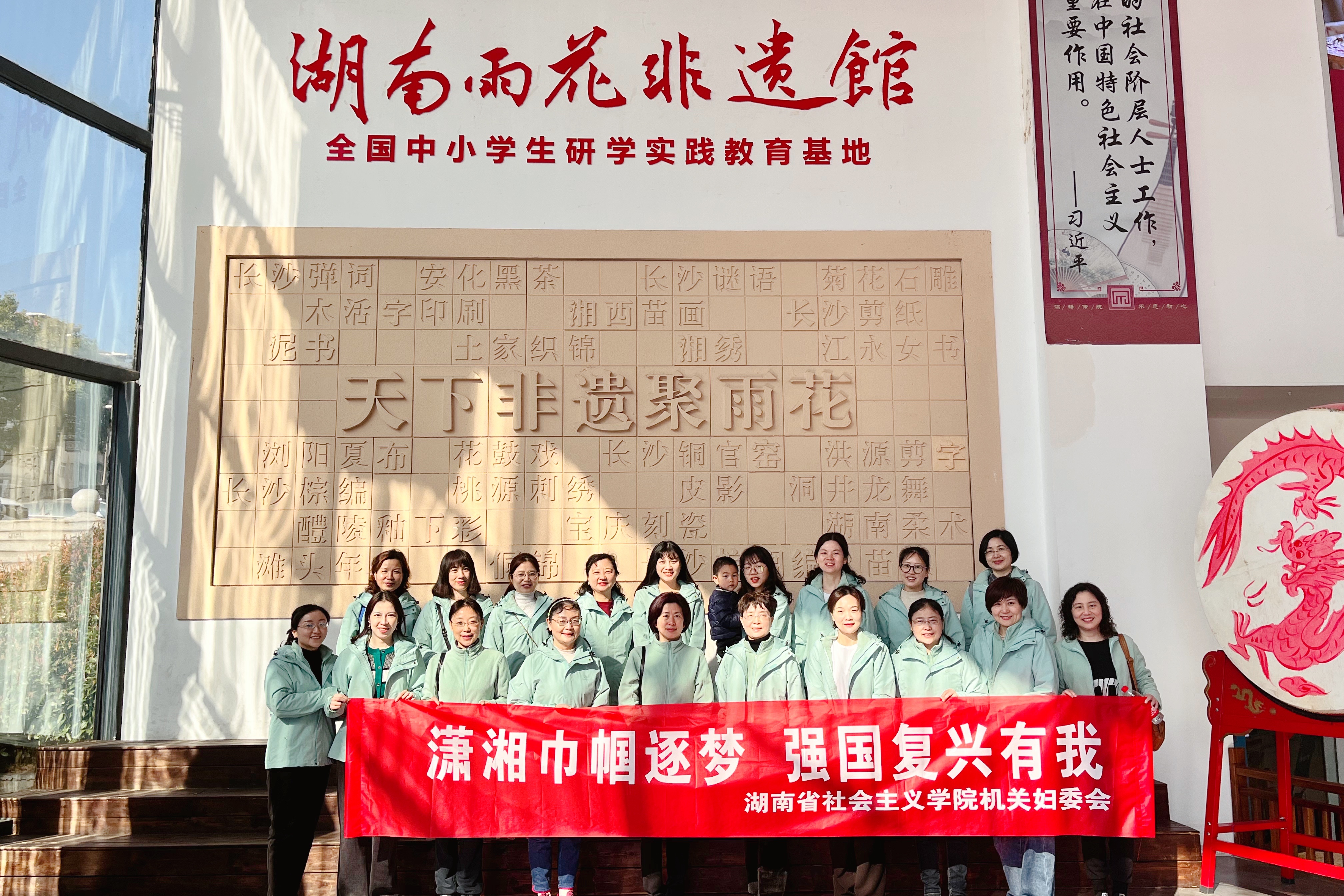 阳春三月,万象更新。2022年“三八”国际妇女节之日,省社会主义学院机关妇委会组织女职工参观湖南雨花非物质文化遗产馆,亲身体验非遗技艺,进一步认识和了解家乡的非遗文化,感受湖湘文化的独特魅力。副院长、党组成员彭英和院女职工20多人参加活动。